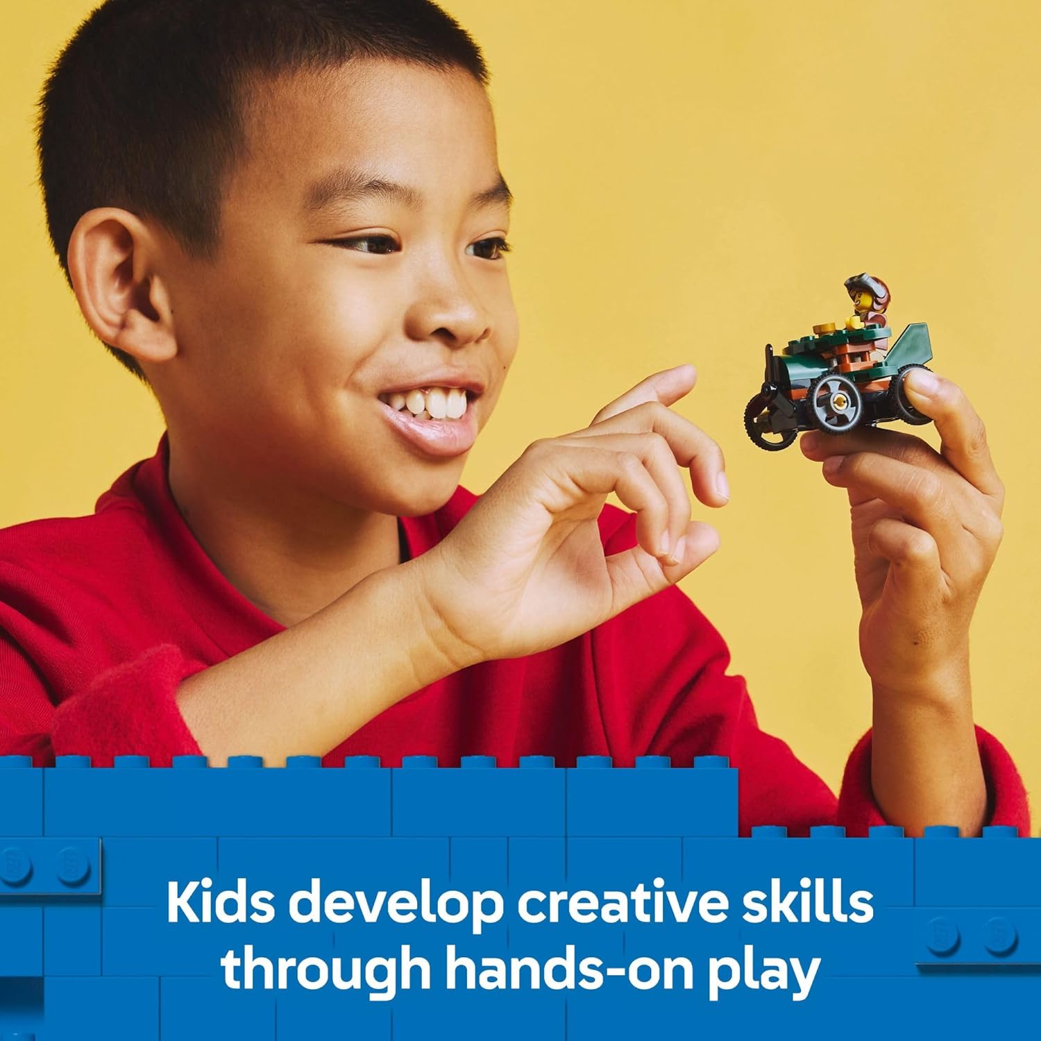 Young race car enthusiasts will love the high-speed adventure of the LEGO City Airplane vs. Hospital Bed Race Car Pack (60459) building set for boys and girls ages 5 and up. This fun race car toy comes with 2 soapbox race cars and 2 minifigures. Pit the pilot in the soaring airplane against the patient in the surprisingly speedy hospital bed. Who will win? This LEGO race car toy includes a step-by-step printed construction guide inside the box set. Kids can also use the LEGO Builder app for an immersive building experience, with features that let them zoom in, rotate the models in 3D, track their progress, and explore and save other playsets. LEGO City playsets feature cool vehicles, realistic structures and fun characters that inspire imaginative play without limits. Expand the fun and add this kids' toy to others LEGO City sets (sold separately) in the range for a world of play possibilities. Contains 70 pieces.