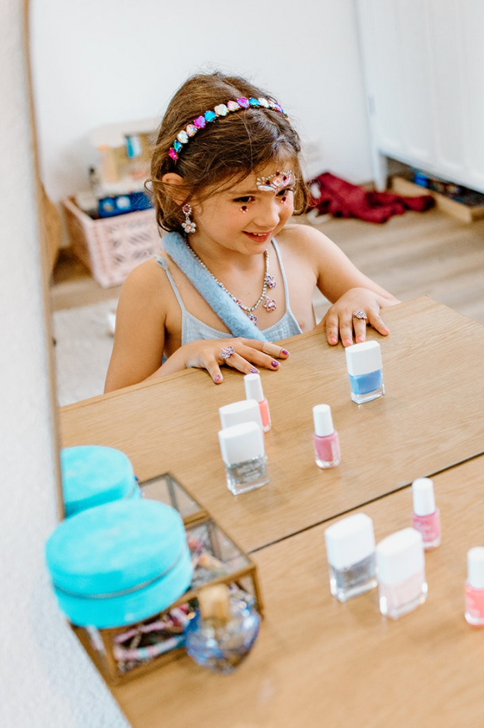 The Boutique Heartbreaker Headbands are a stylish accessory for young fans of all things whimsical! Inspired by Taylor Swift, these enchanting headbands feature alternating heart gemstones, with vibrant blue and purple gems paired with sparkling clear stones. Perfect for adding a touch of magic to any outfit, these headbands are comfortable and designed for all-day wear. Whether dressing up for a special occasion or just adding flair to everyday outfits, these headbands are sure to make any little heart sing!