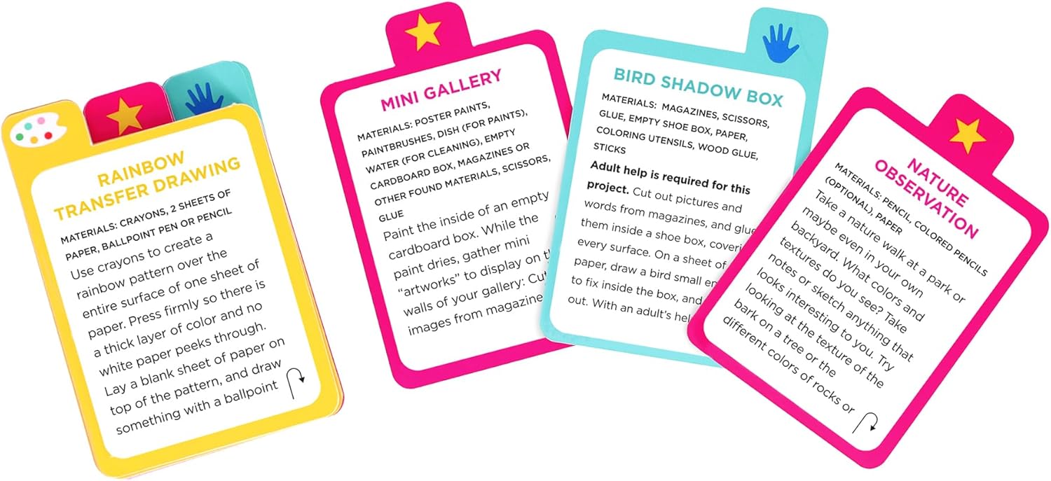 Choose cards with the palette icon if you're feeling playful, the star icon if you want to be inspired, or the hand icon if you're in the mood to make. With so many options, you can pick more than once to find the activity that fits how you feel in the moment!