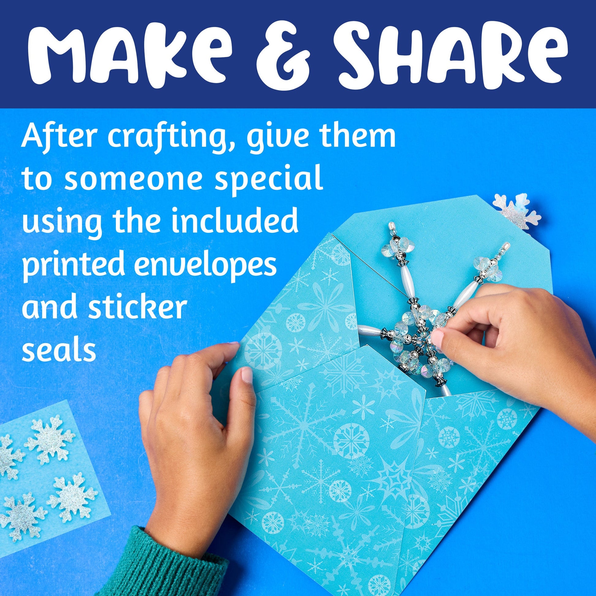 Celebrate the season with handmade holiday crafts! Use your beaded snowflake ornaments to decorate your holiday packages or give these handmade gifts to someone special. Hanging ribbons and gift envelopes are included.