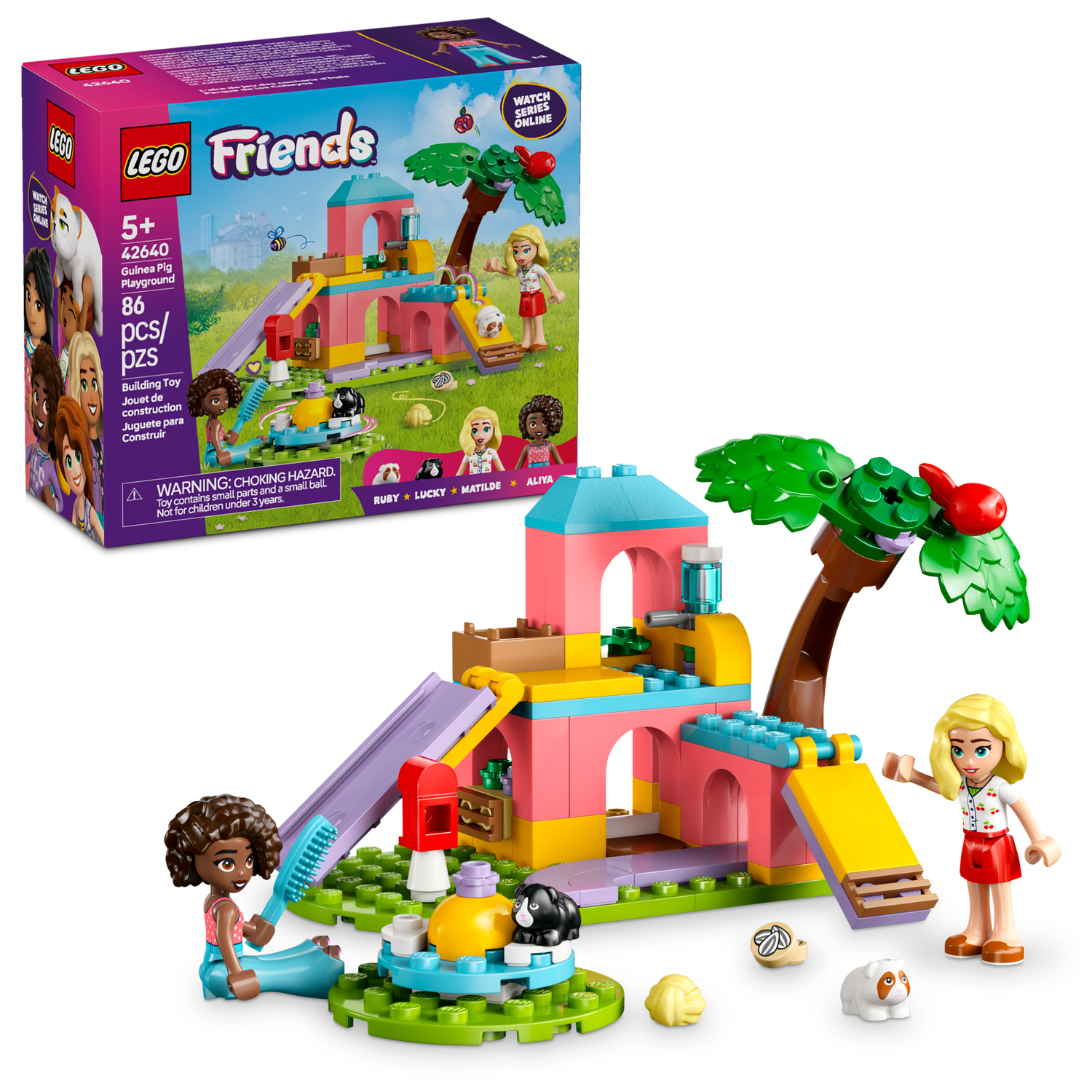 Here’s a pretend-play building kit for girls, boys and animal-lovers aged 5 and up who would love to create their own guinea pig adventures. The LEGO® Friends Guinea Pig Playground (42640) comes with 2 LEGO Friends minidolls and 2 guinea pig figures for hours of role-play fun.