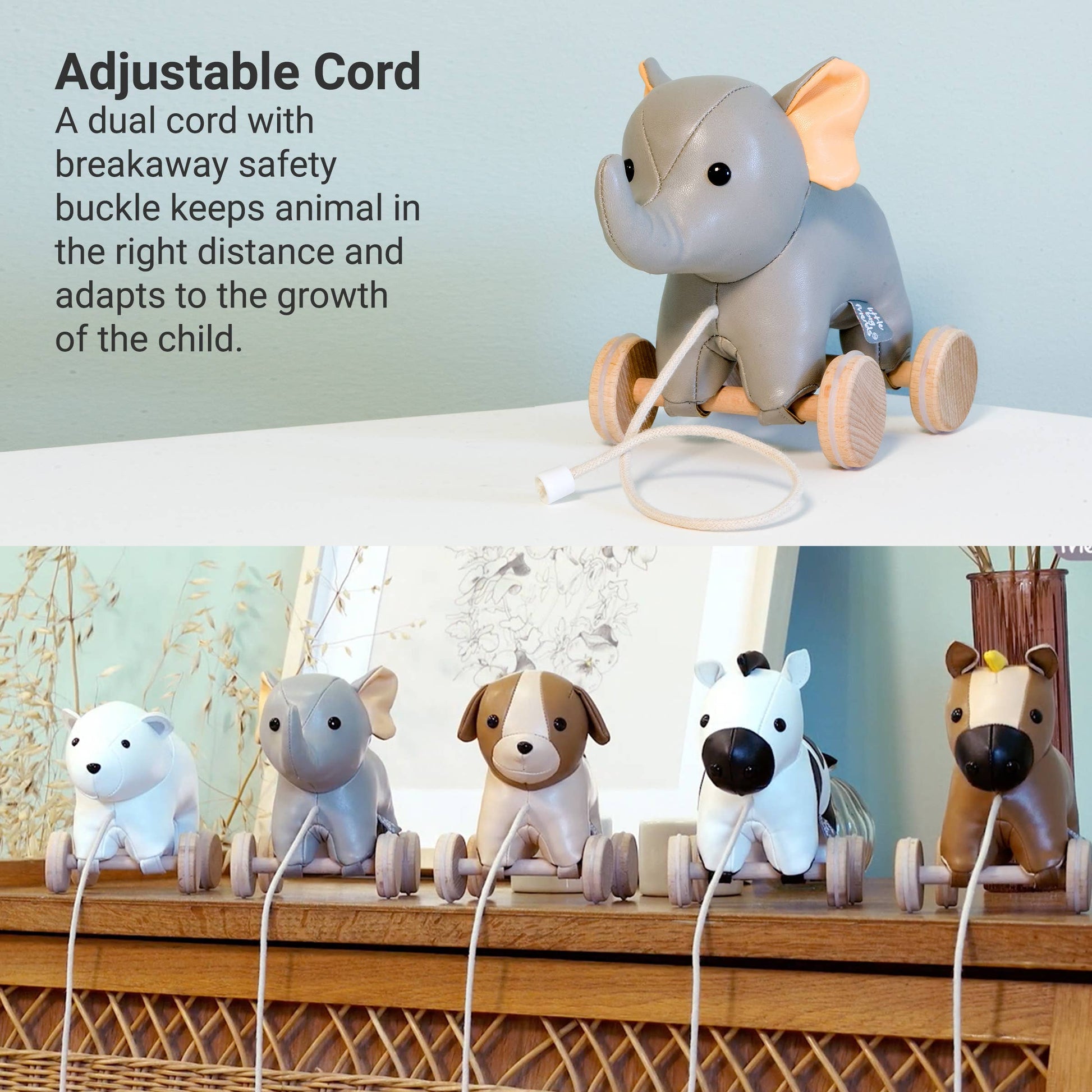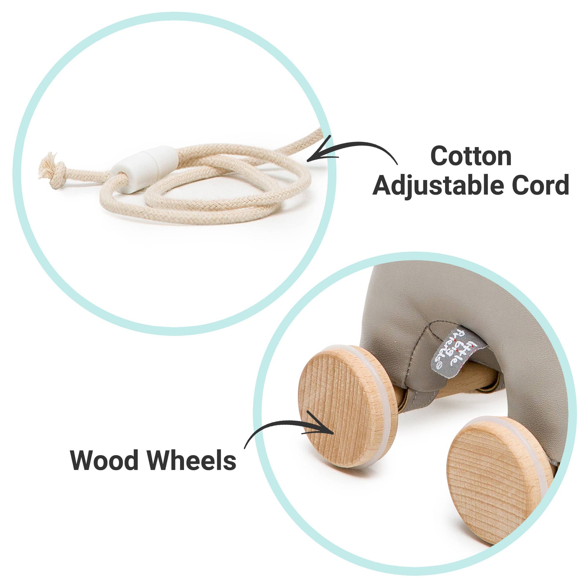 Animal friends who will follow baby everywhere! Their adorable retro look and supple, soft texture will make them one of your child's favorite toys. The double cord with detachable safety buckle keeps the animal at the right distance and adapts to the growth of the child.