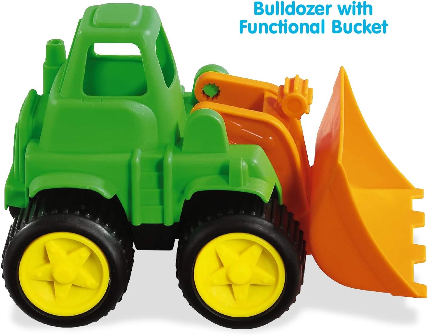 Create your own construction site with these Little Tuffies from Kidoozie. Made of durable plastic, these trucks are a great addition to every kids collection. Take these sturdy little trucks to the beach, in the car or just use them at home, they are convenient for any type of play. Includes 1 cement mixer, 1 bulldozer and 1 dump truck - all with real working parts!