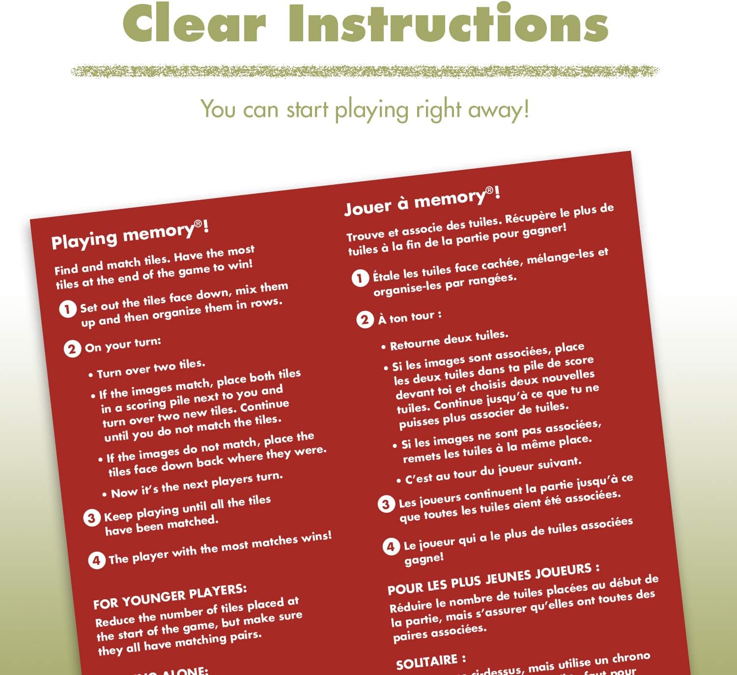 In this classic game of picture matching, flip over delightfully illustrated tiles to reveal familiar scenes of the great outdoors like a perfectly portioned s’more, a food-thieving bear, a cozy campfire, and more! Pick up the most matching pairs to win!