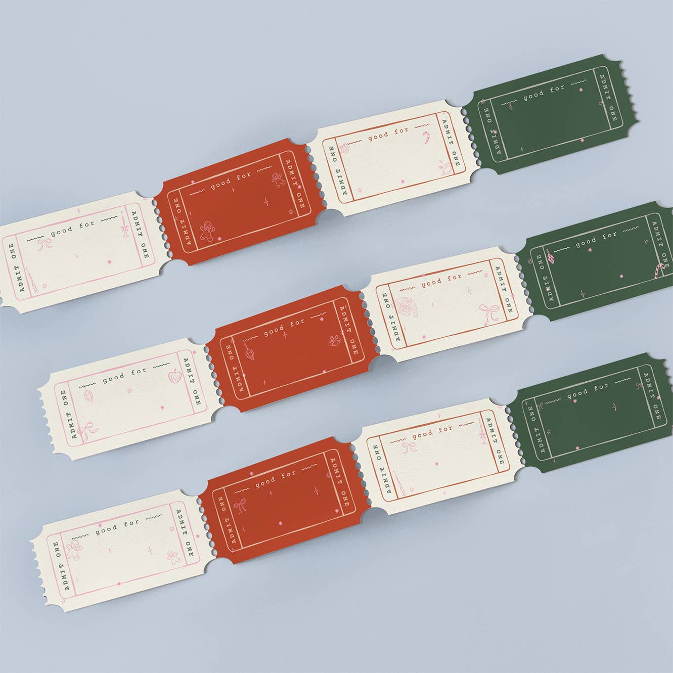 This mini card comes with 12 holiday activity coupons attached and ready to gift. Each ticket offers a cozy, festive way to connect—like “Neighborhood light tour,” “Gingerbread party,” or “Cookie decorating contest.”