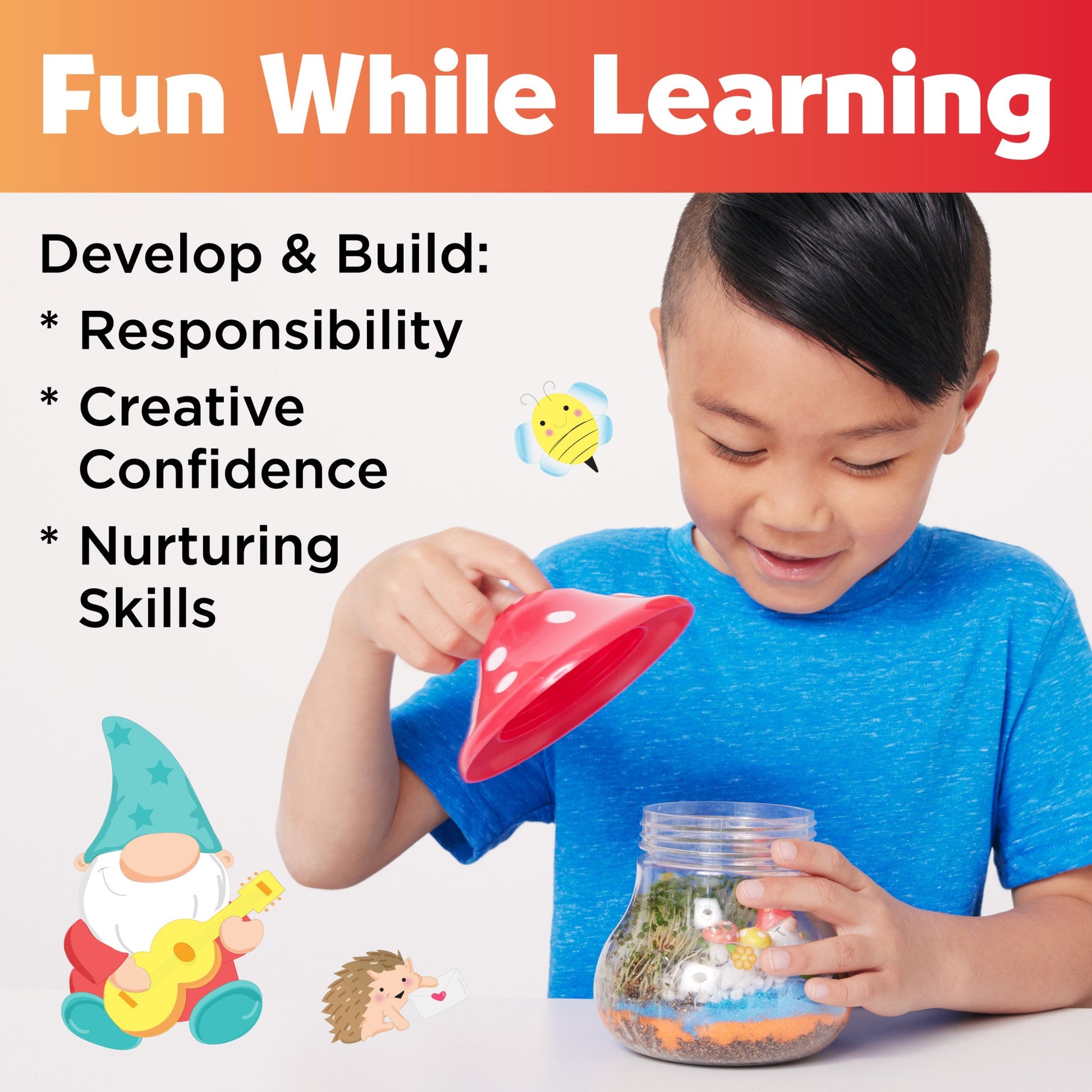 Create a gnome terrarium with the Plant and Grow Woodland Forest kit! Foster a love of nature with these whimsical indoor garden crafts for kids. Plant & Grow terrarium kits come ready to decorate, plant and grow. With non-toxic and safety tested components, everything you need to create your own indoor gnome garden is included. Just add water!