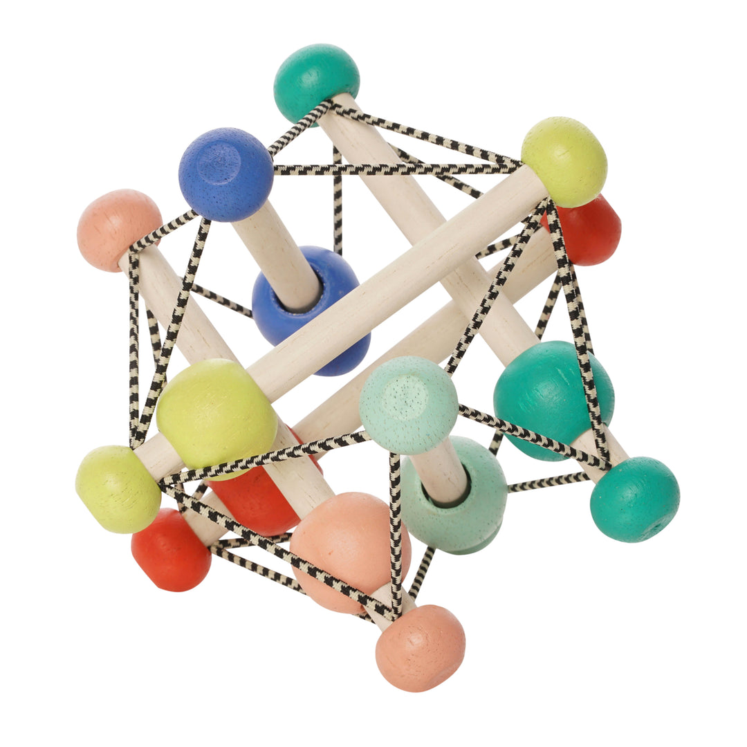 A smaller version of the award-winning Skwish! Skwish is a one of a kind wood rattle and teether toy design made from renewable rubberwood and strung together with durable elastic cords. It squishes and returns to its original shape, with beads that slide and rattle. The unique design offers tactile, sensory play while doubling as a teether and rattle toy. It's easy to grasp, encouraging fine and gross motor skill development while providing cognitive and visual stimulation. The on-trend color pallet and striking appearance doubles as room decor - perfect for any nursery.